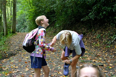 We finally made it down here to Pigeon Forge on Saturday. We had planned to leave Rochester by 3:30 on Friday afternoon since we had a hotel reservation in Indianapolis, IN; however, Dan wasn't able to leave work as early as he planned since he was finishing some project. So we took the time while waiting for him to try to find Ellie some hiking shoes. She has grown like a weed and so, of course, none of her shoes fit anymore. We bought her some tennis shoes a couple weeks ago but they haven't even been worn yet and she didn't want to get them dirty. So first we went to Saver's and struck out, then on to the Salvation Army--again nothing there for her. Finally we went down to Goodwill and she found a pair of New Balance tennis shoes for cheap--and they even look decent. But they are a size 9!!!!! And they fit her! I wear a size 9. Of course, she does need bigger feet to support her incredibly long legs.